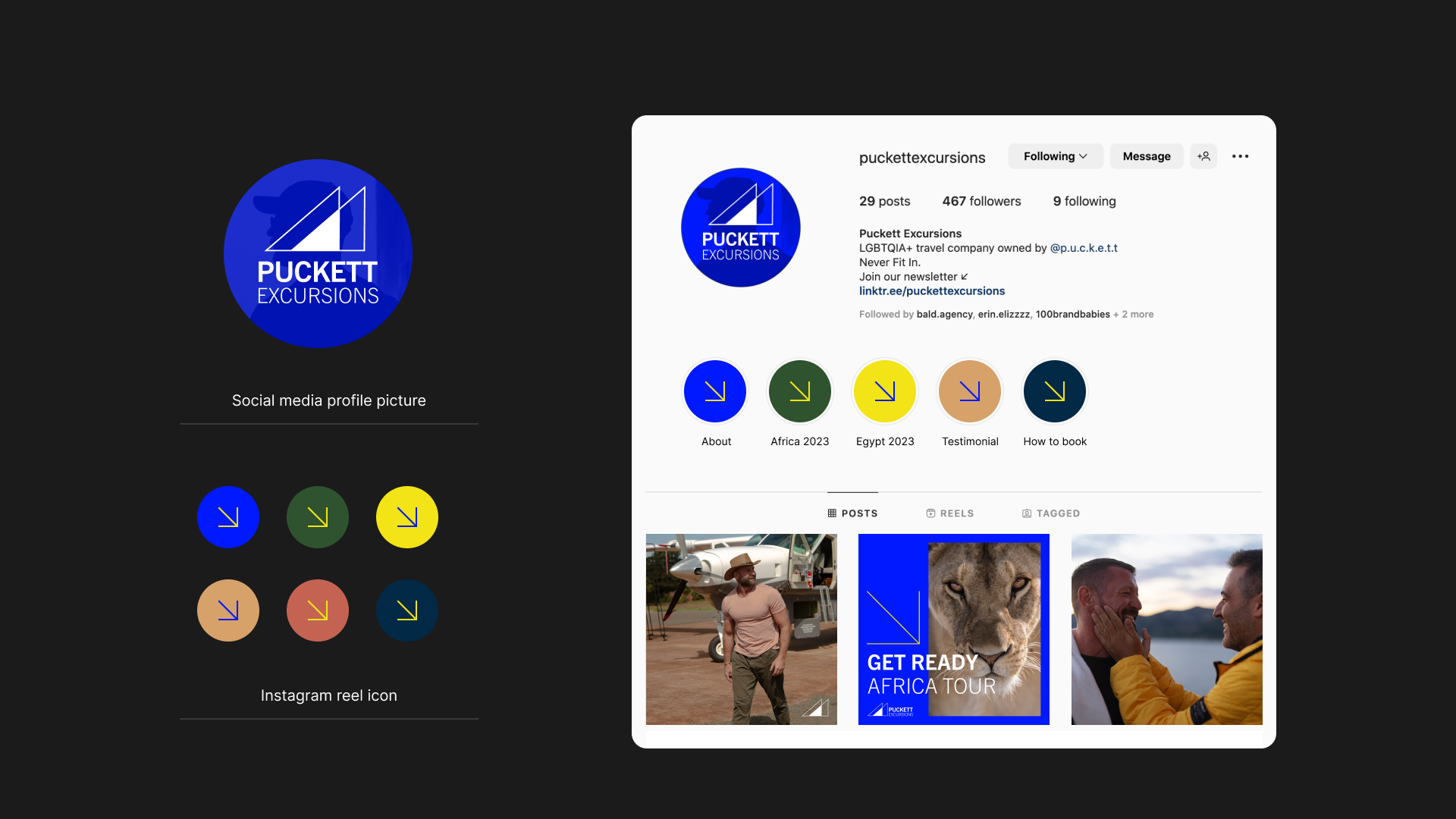 Puckett Excursion, an LGBTQIA+ tourism company, had no cohesive brand identity and wanted to avoid the usual clichés of LGBTQIA+ tourism. They needed something that felt unique, inclusive, and had a strong sense of community and adventure.